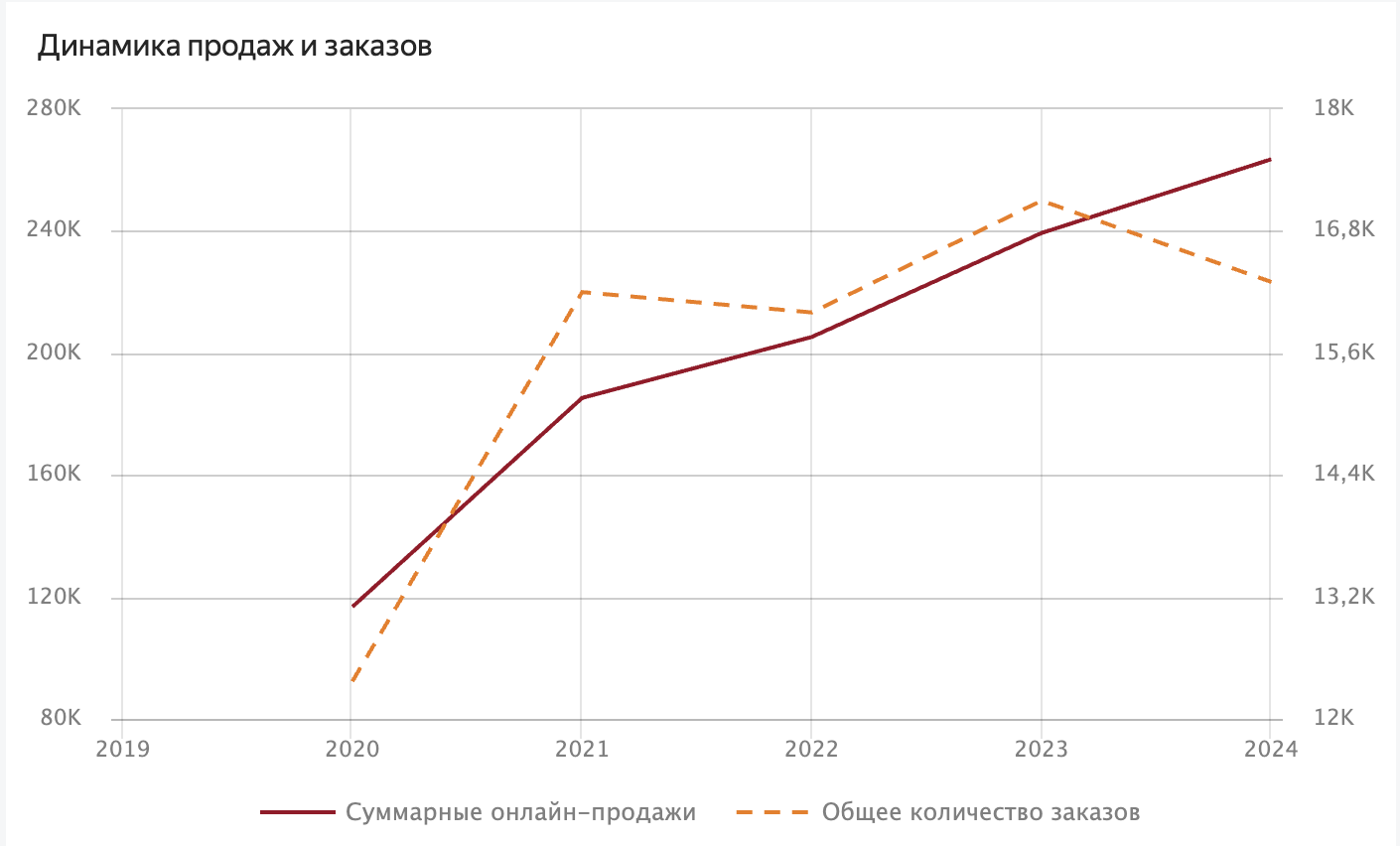 Динамика продаж и заказов, среднего чека на Ozon